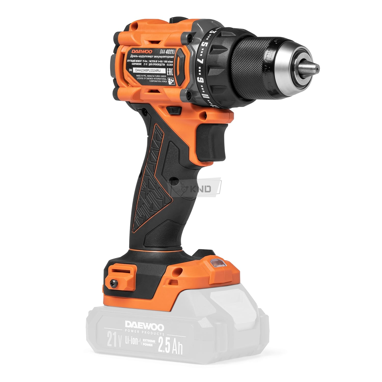 Модель совместима со всеми аккумуляторными инструментами и батареями DAEWOO линейки 21В.