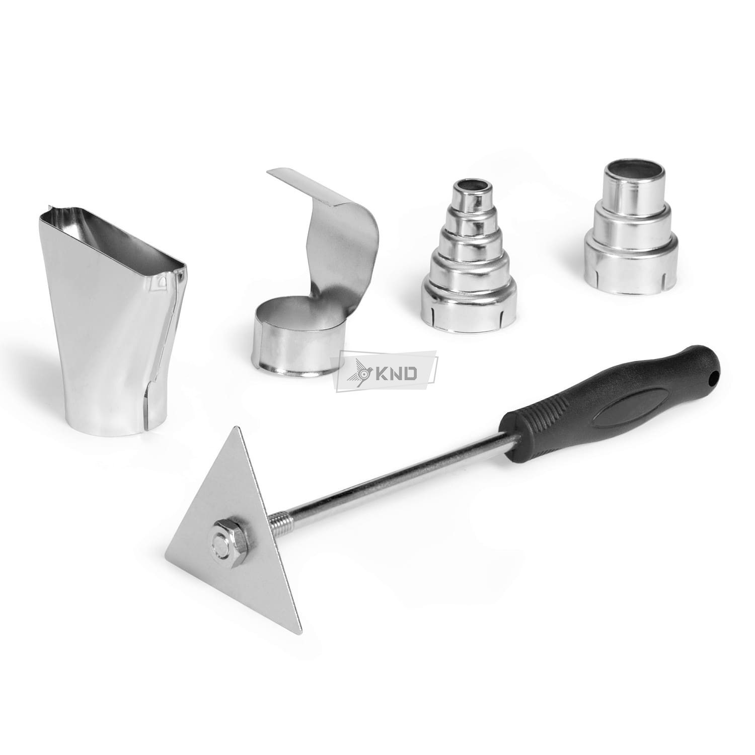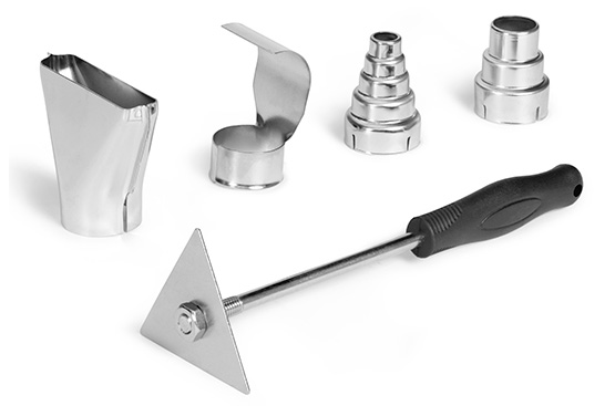 Комплект из четырех сменных насадок позволяет решать разнообразные задачи: сушку, пайку, очистку покрытий и обработку труднодоступных мест.