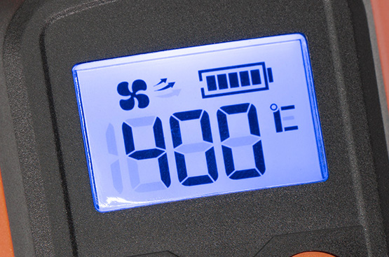 Отображает точную температуру нагрева, силу воздушного потока и уровень заряда батареи, обеспечивая удобный контроль за устройством.