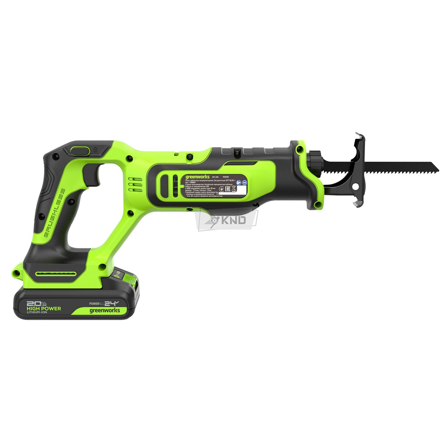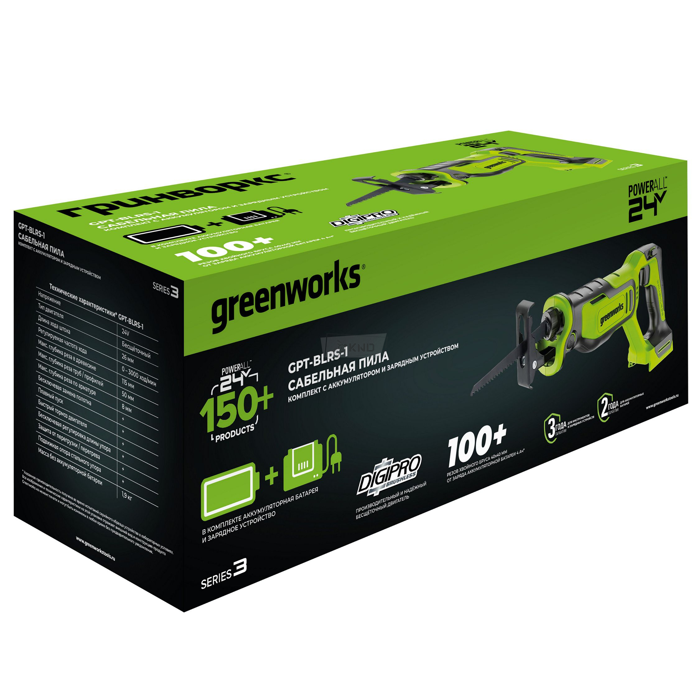 Сабельная пила аккумуляторная GreenWorks GPT-BLRS-1 24В, с АКБ 2 Ач и ЗУ