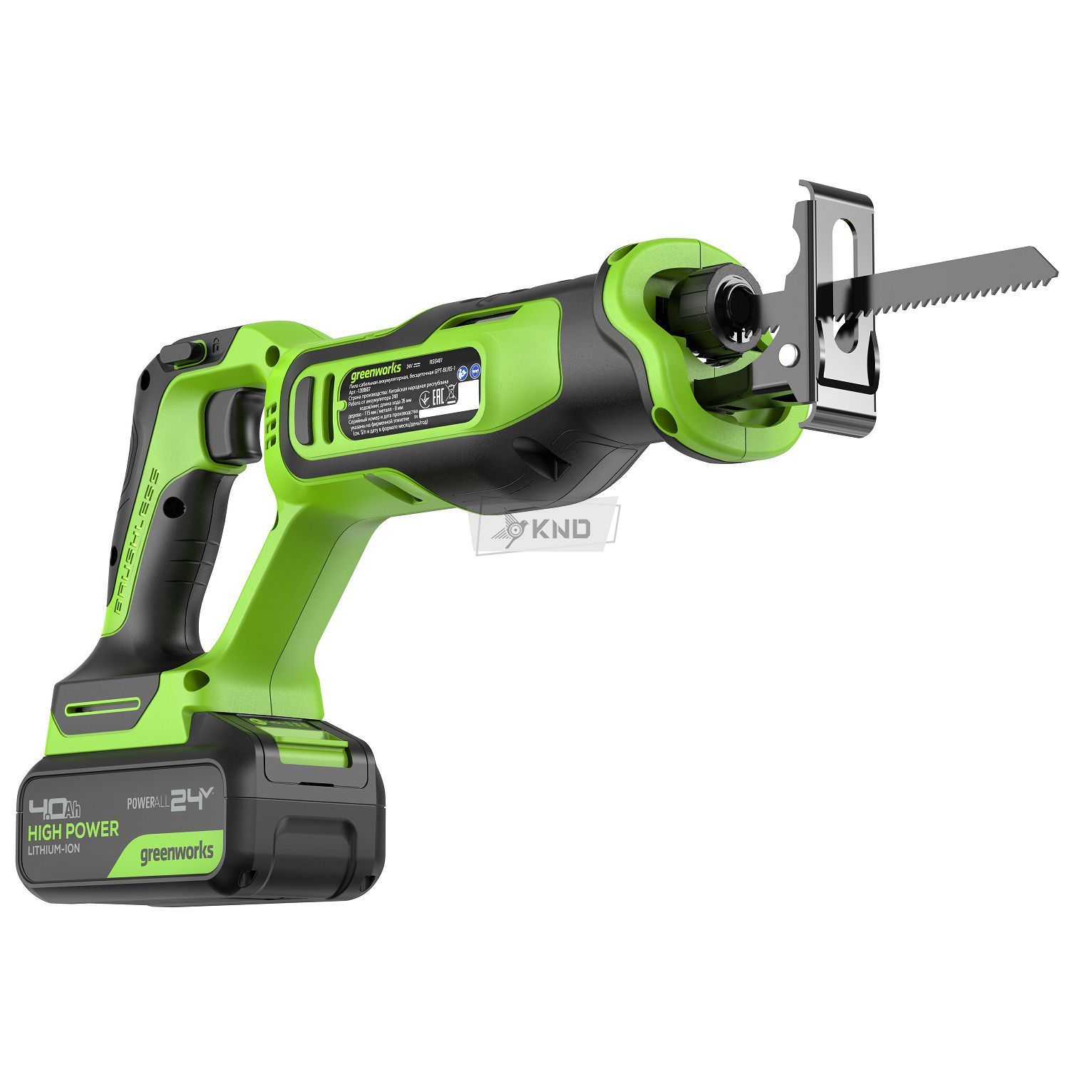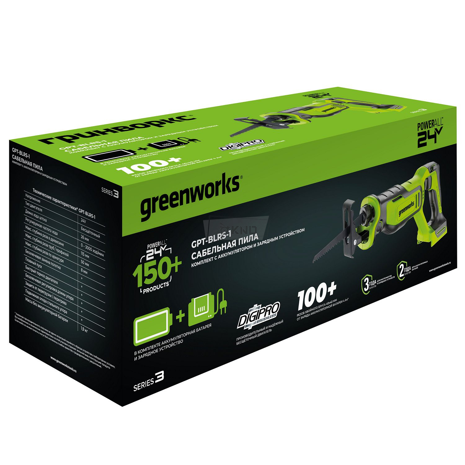 Сабельная пила аккумуляторная GreenWorks GPT-BLRS-1 24В, с АКБ 4 Ач и ЗУ