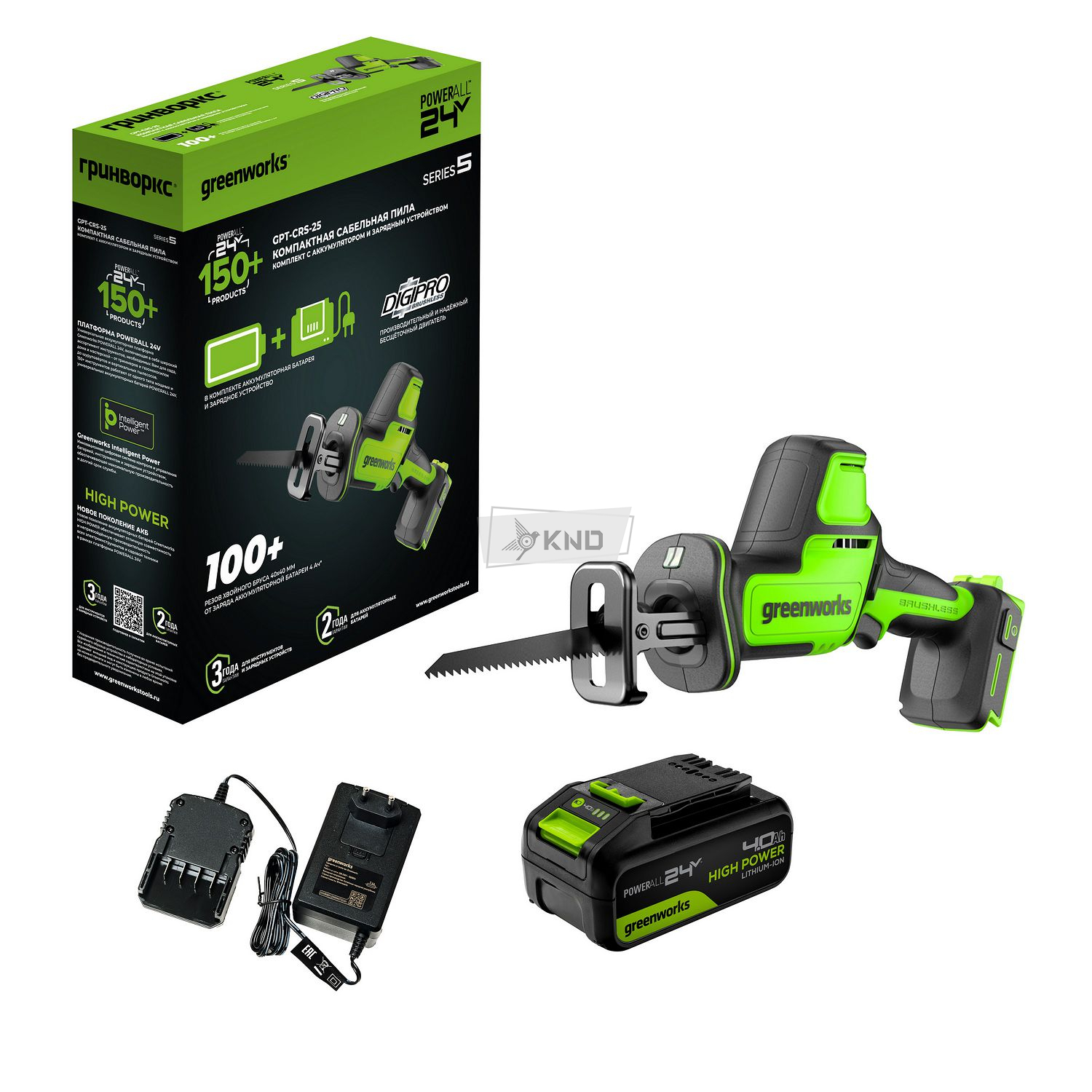 Сабельная пила аккумуляторная GreenWorks GreenWorks GPT-CRS-25 24В, с АКБ 4 Ач и ЗУ