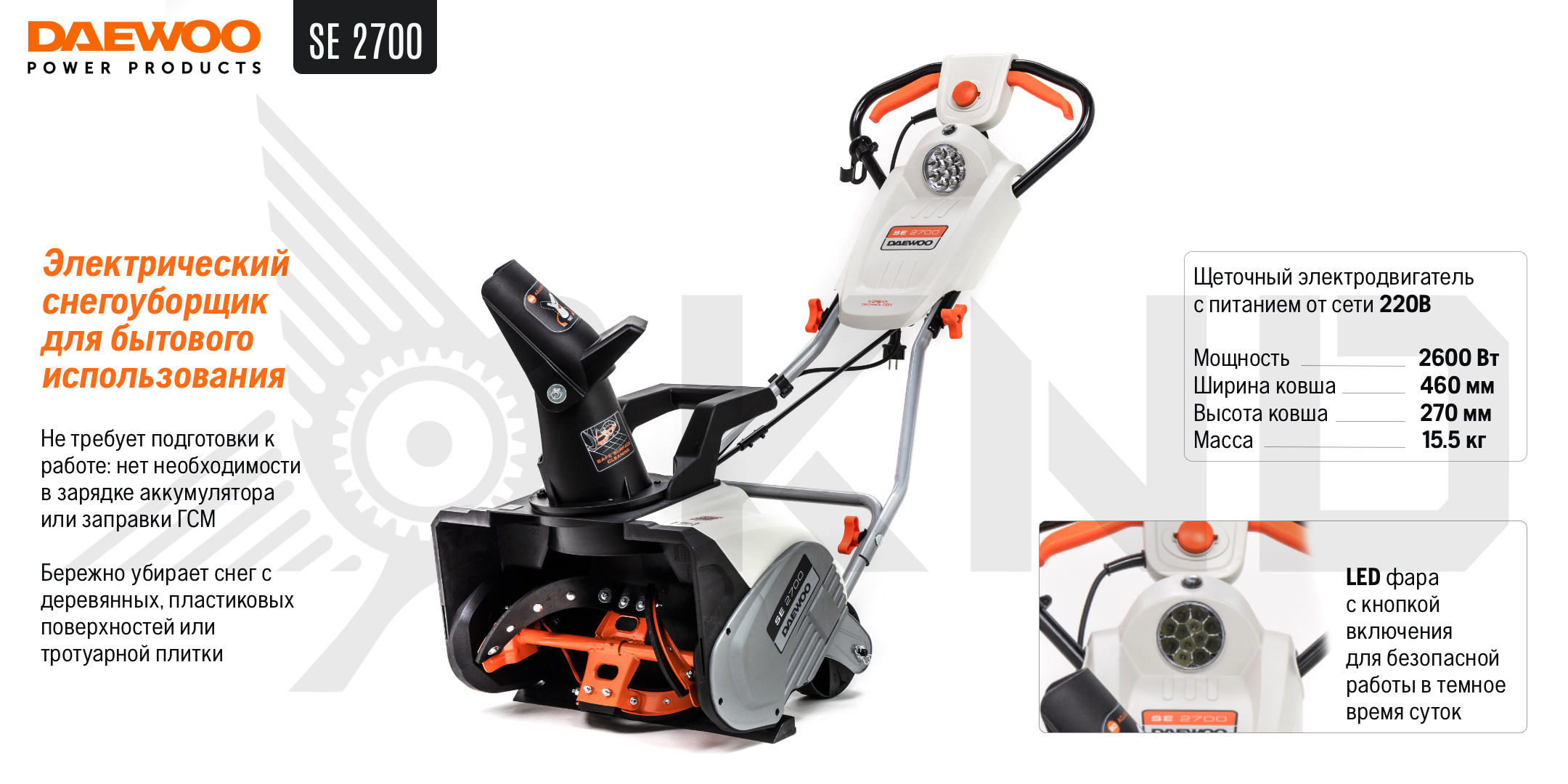 Только у нас снегоуборщик электрический DAEWOO SE 2700 по самой доступной цене! На все товары распространяется гарантия от производителя. Оперативная доставка в Смоленске. Оформите заказ сейчас и специалисты интернет-магазина свяжутся с Вами в течение нескольких минут.Документация
